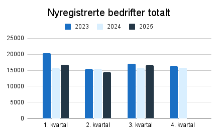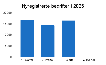 Totalt ble det etablert 16 566 virksomheter i tredje kvartal 2025. Det er en økning på 15 prosent fra andre kvartal.